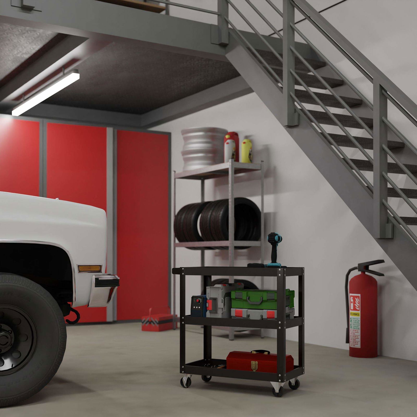 Verkstadsvagn med 3 nivåer verktygsvagn med separata fack 59 x 45 x 107 cm svart