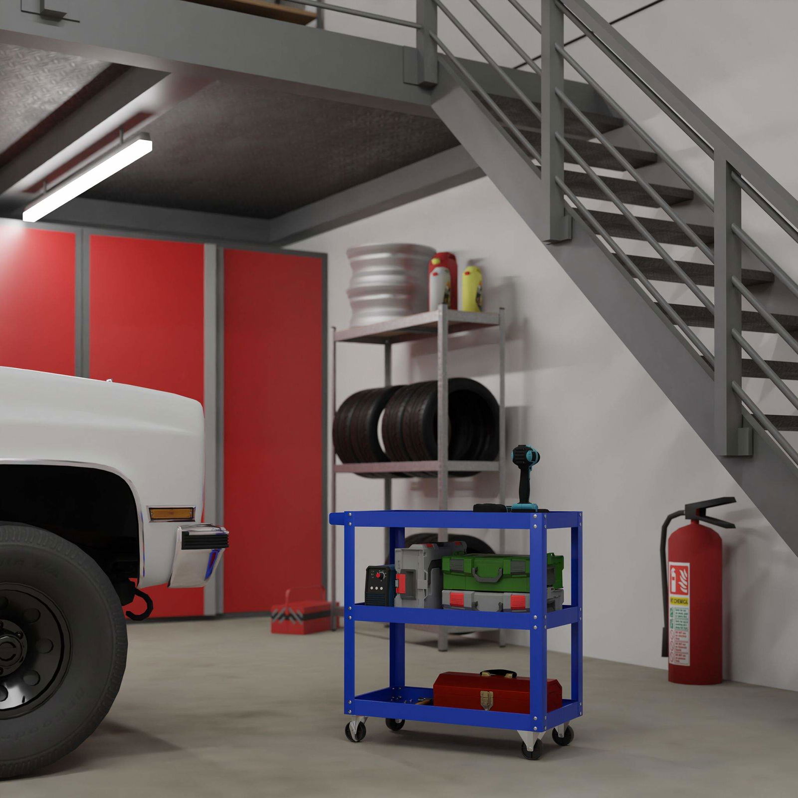 Relaxdays Verktygsvagn 2 våningar, upp till 100 kg, HBD 76 x 78 x 35 cm, verkstadsvagn, tom, garage, blå