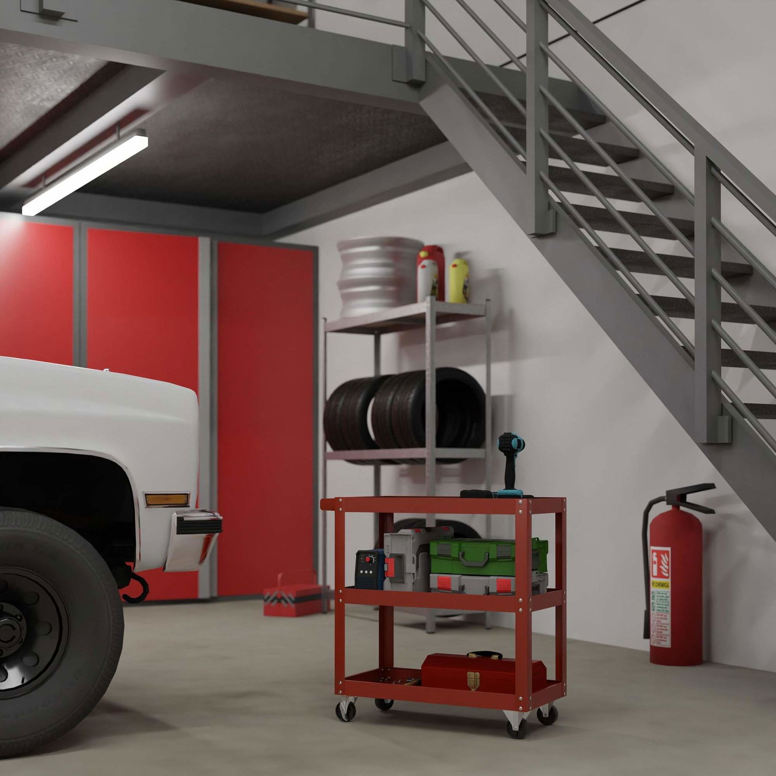 Verkstadsvagn 3 nivåer verkstadsvagn med 4 universalhjul & handtag 73 x 36 x 75 cm röd