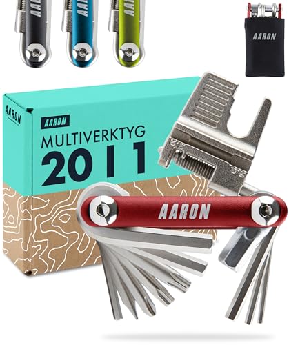 AARON Verktyg 20 i 1 multiverktyg – multifunktionsverktyg för cykel tillverkat av rostfritt stål/aluminium – vikbart mini-cykelverktyg med många funktioner – praktiskt cykelverktyg i rött