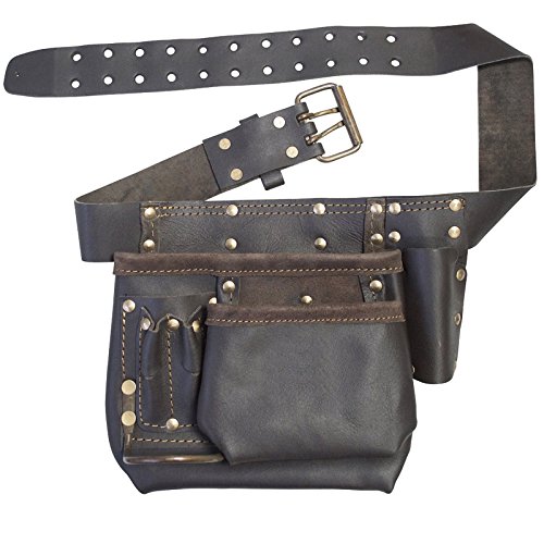Spares2go olja garvat läder förstärkt flera fickor spikpåse & gör-det-själv verktygsbälte
