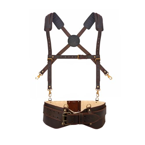 TOURBON Äkta läder verktygsbälte med stag kraftiga arbetshängslen för elektriker snickarkonstruktion