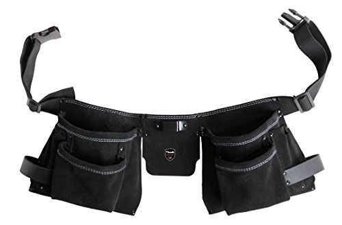 TOUGH MASTER Läder arbetsbältesväska 12 fickor mocka gör-det-själv bälte, flera fickor förvaring organisatör, hammarögla, tejpficka slitstarkt verktygsbälte för byggare