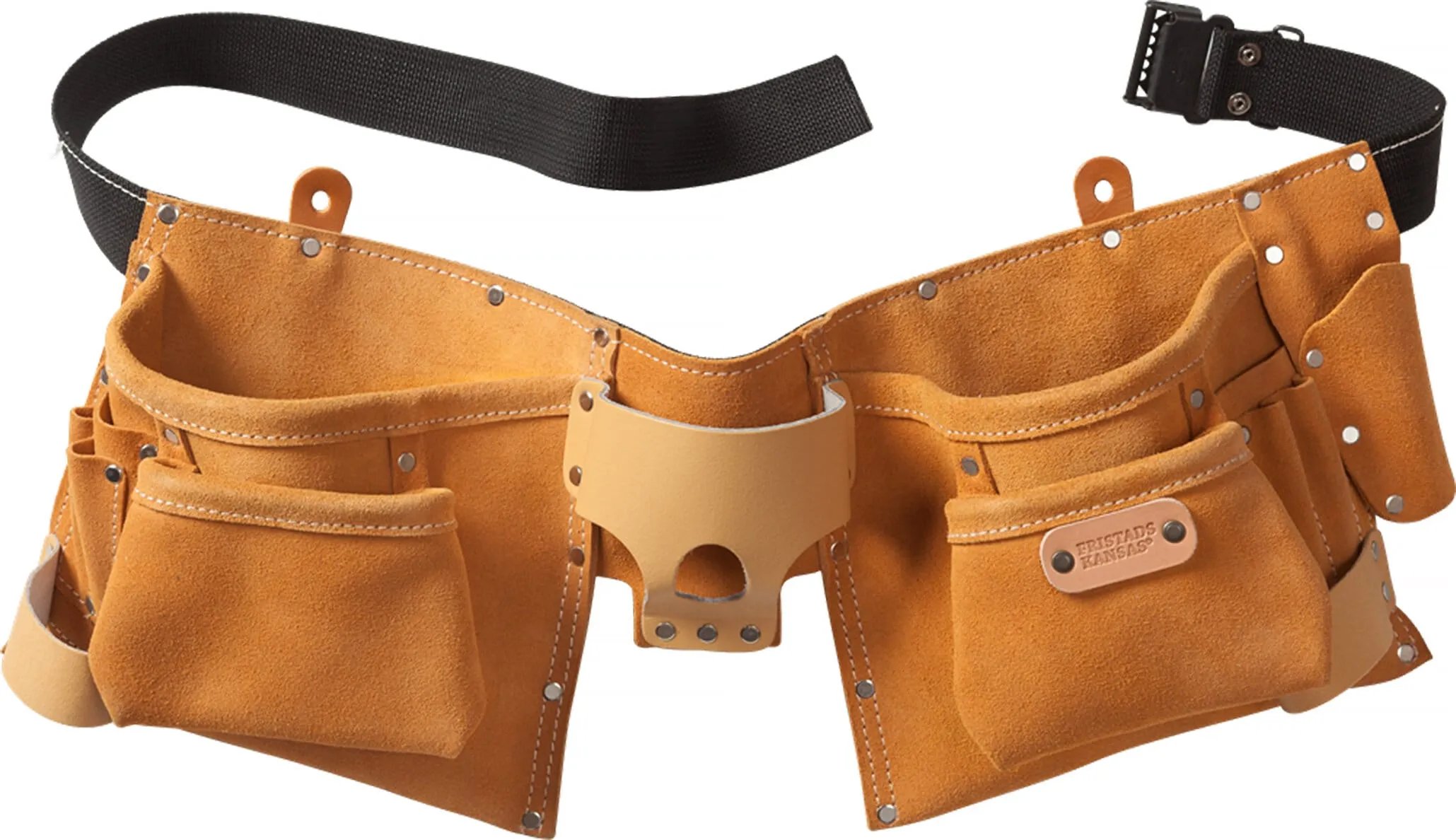 kwb Tvådelat verktygsbälte läder med 7 fack, nagelväska, knivficka, hammarhållare och metallklämma för måttband