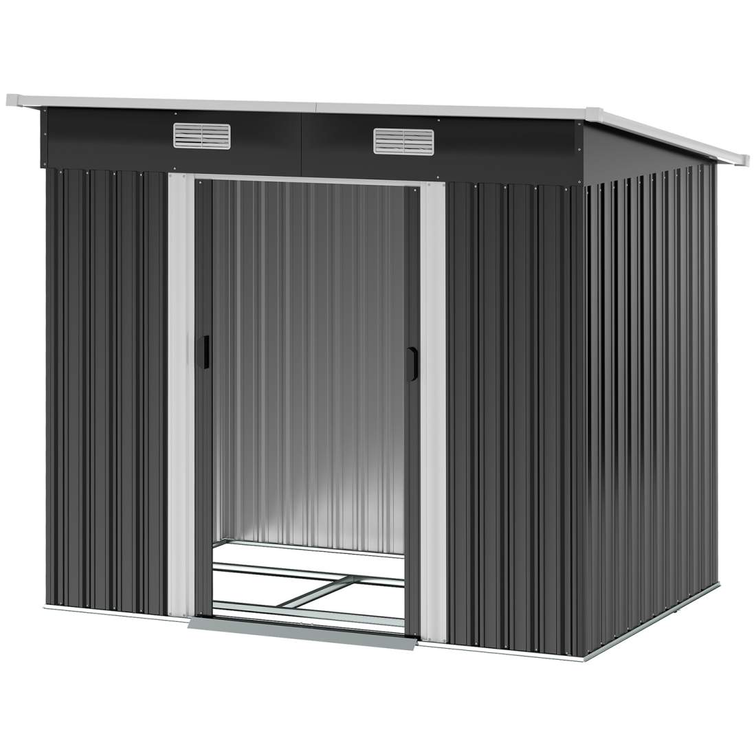 Verktygsbod Stål 2,7M² Verktygsbod Uv-Skydd Trädgårdsskåp 2 Skjutdörrar Hylla Foundation Mörkgrå 238X132X198,5Cm