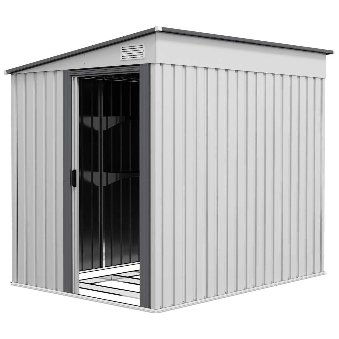 Verktygsbod i galvaniserat stål 4,9m² 277x195x192cm redskapsskjul med sadeltak, grund, låsbar skjutdörr, väderbeständig trädgård