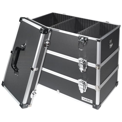 HMF 14661-02 aluminium verktygslåda tom, 3 våningar, 44 x 45 x 24 cm, svart