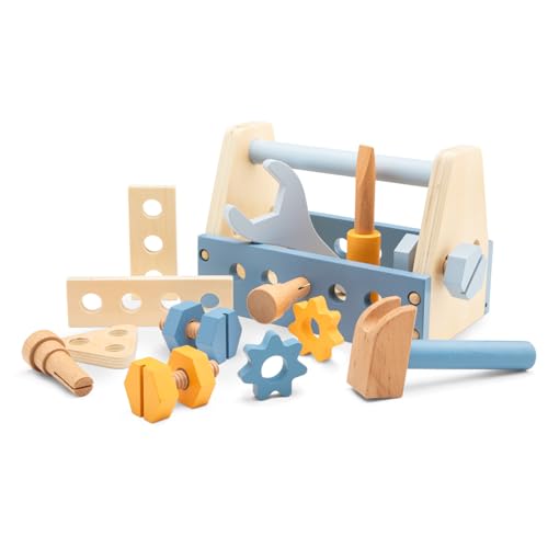 Newpop verktygslåda barn, barnverktyg, träleksaker pedagogiska leksaker, verktygslåda barn, verktyg från 3 år, leksaksverktyg, verktygsleksaker, leksaksverktyg, byggsatser, pojke, flicka