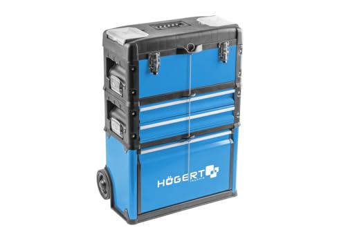 Hogert Technic-verktygslåda – 3-delad, modulär mobilserviceskåp med lådor, 45 kg kapacitet, integrerade hjul och teleskophandtag, perfekt för underhållstjänster, verkstäder och gör-det-självare