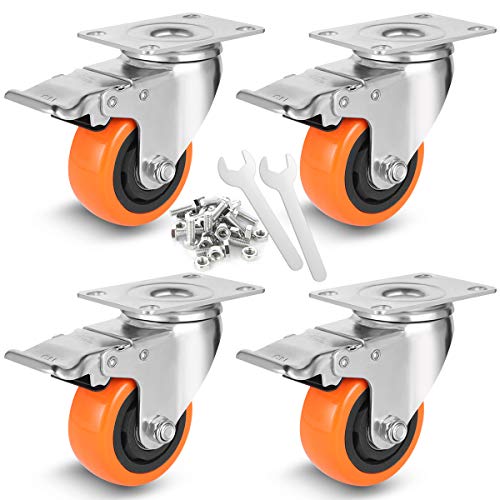 W B D WEIBIDA 5-tums tunga hjul med sidobroms, industriella plåthjul med lastkapacitet 1000 lb per enhet, slitstarka polyuretanhjul för arbetsbänk, verktygslåda och industri, uppsättning om 2
