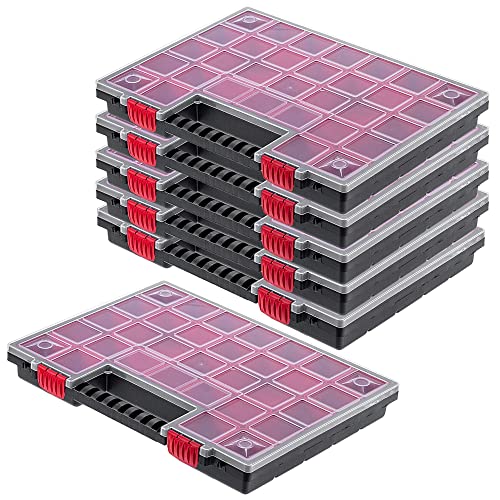 KADAX Organizer, verktygslåda av plast, magasin för små delar med transparent lock, magasin i olika storlekar, sortimentslåda (40 x 30 cm/6 stycken)