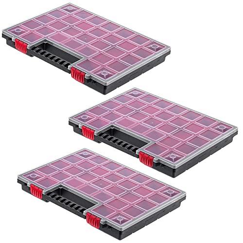 KADAX Organizer, verktygslåda av plast, magasin för små delar med transparent lock, magasin i olika storlekar, sortimentslåda (34 x 25 cm/3 stycken)