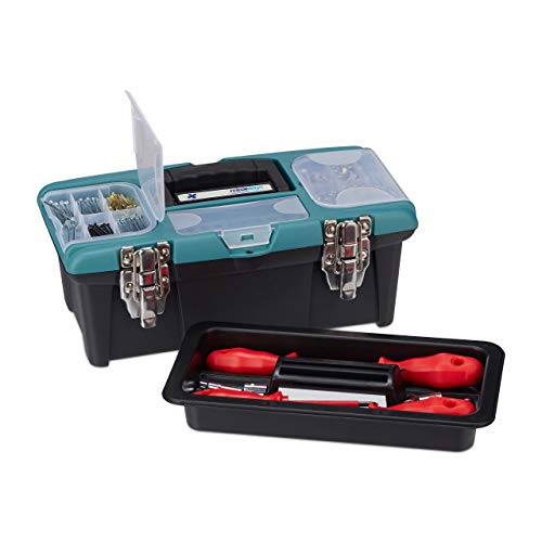 Relaxdays Verktygslåda tom, med bärhandtag, plast, låsbar, verktygslåda, HBT 13 x 33 x 18 cm, svart-grön