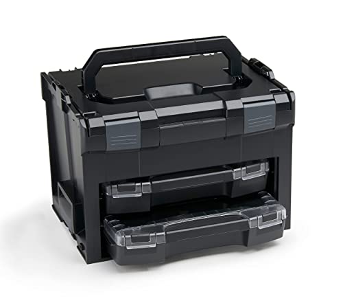 WFix Sortimo Bosch L-BOXX 102 verktygslåda i plast, svart lock, transparent med infälld låda, set, H3, sorteringslådor för små delar, idealiskt skruvförvaringssystem