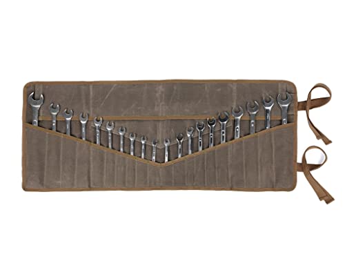 Bull Tools Verktygsrulle, organisatör med 26 fickor för skiftnycklar, metrisk och SAE, hållbar bomullsduk, rullverktygspåse för mekaniker, DIY, elektriker - sandtvättad olivgrön (verktyg ingår inte)