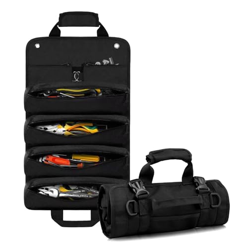 WELKINLAND Verktygsrulle för män, rullningsväska för verktyg, verktygslåda, organisatör, mekaniker verktygsrulleväska, väska för motorcykel, verktygsrulle, skiftnyckel, roll-up-påse, elektriker