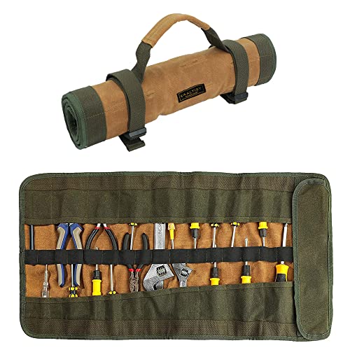 Kaaltisy Verktygsrulle, slitstark 16 oz vaxad duk verktygsväska med spännen och handtag | kaki verktygsrulle | 65 cm x 36 cm