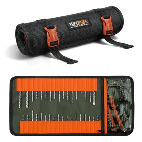 TUFFWORX Verktygsrulle, svart med orange spännen, bärbar verktygsorganisatör