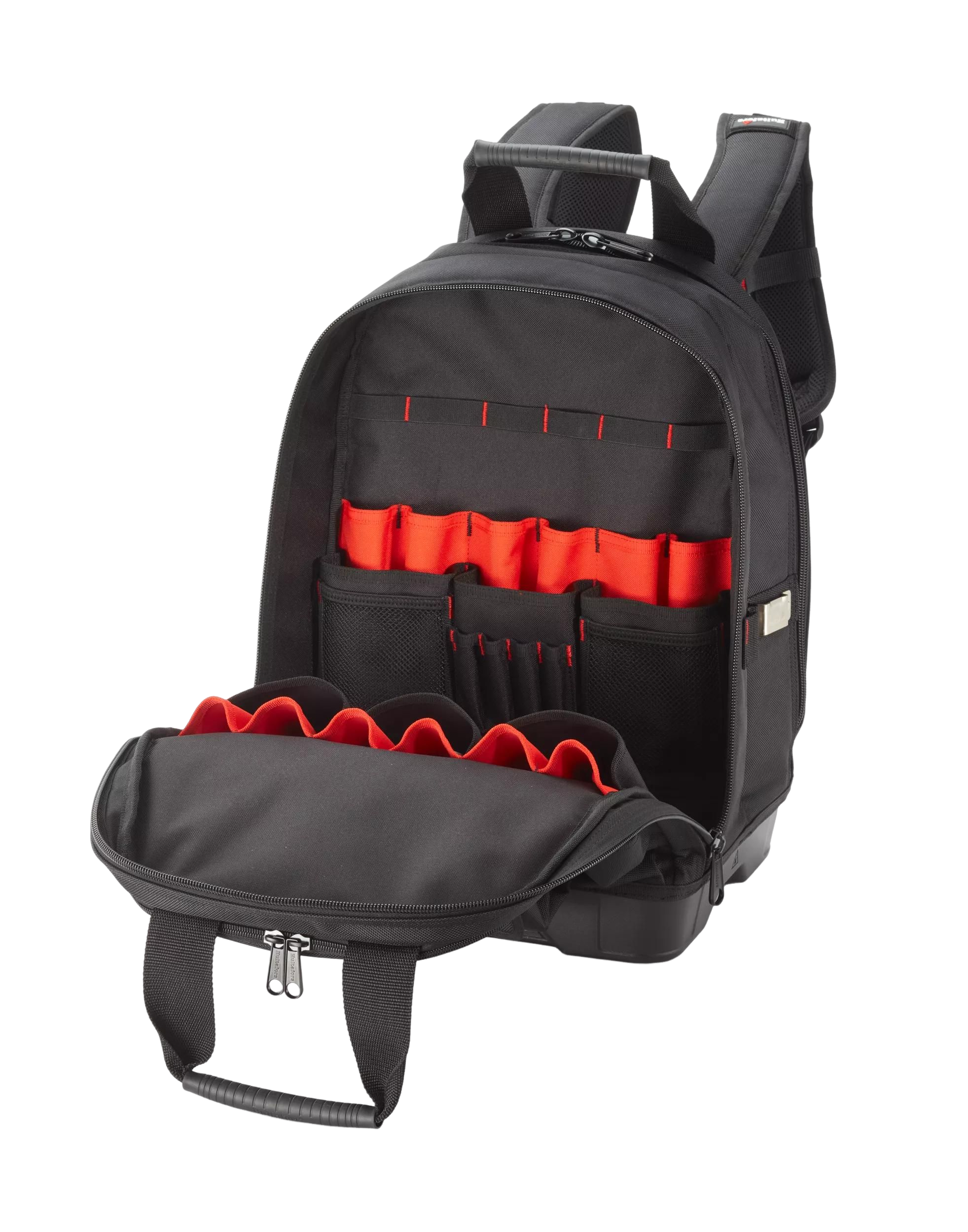 WINHUNT Verktygsryggsäck för män, slitstark verktygsväska ryggsäck med vattentät gjuten bas, 23 fickor verktyg förvaringsväska för elektriker byggarbete, svart