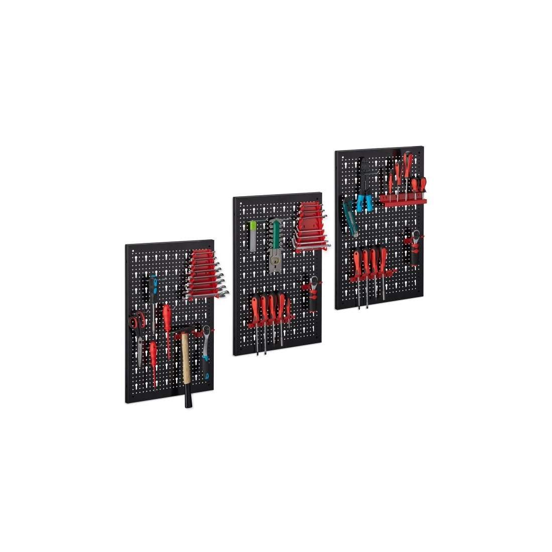 Verktygsvägg med 25 hängande tillbehör förvaringssystem verktygshållare sortiment 3 perforerade paneler 120 x 60 cm