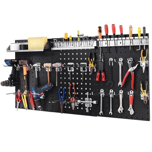 Verktygsvägg verktyg perforerad vägg med 3 pegboards & 28 delar hängande tillbehör Svart