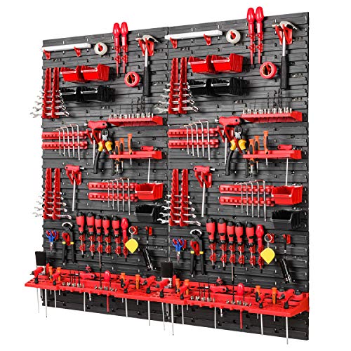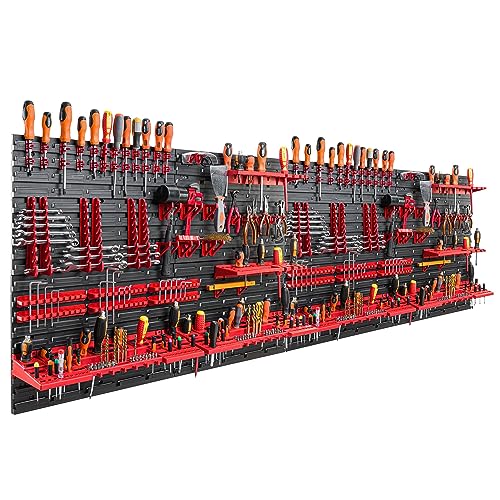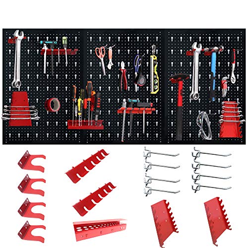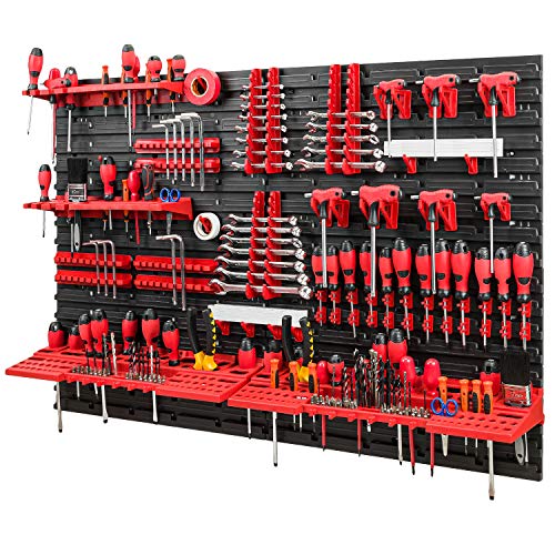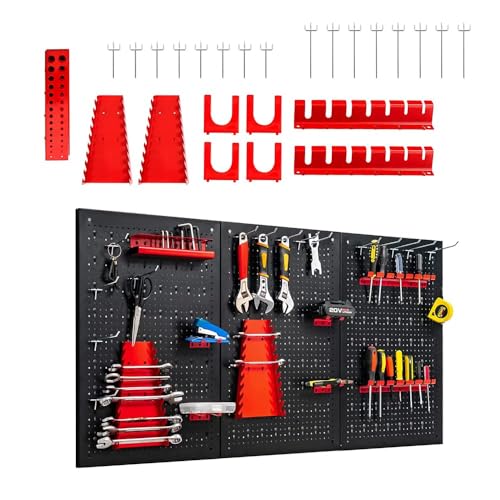 LIFERUN Verktygsvägg i metall, tre delar hålvägg verkstad, utbyggbar verktygshålvägg med 17 delar krokar och hållare, verktyg vägg för verkstäder 118 x 59.5 x 2 cm (röd)