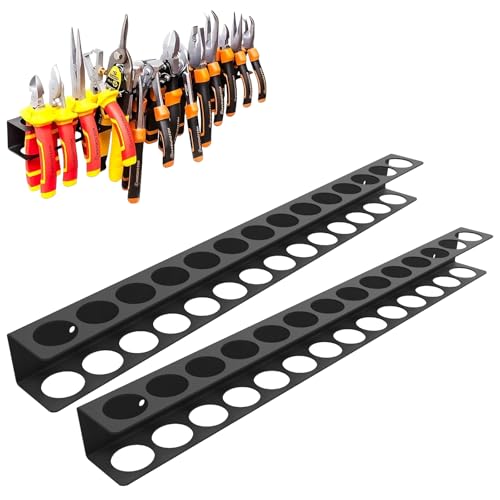 Tånghållare väggfäste, 2 stycken verktygshållare vägg av stål verktyg väggfäste med 14 hål för skruvmejsel tång hammare arrangör för garage verkstad verktygsvägg, svart