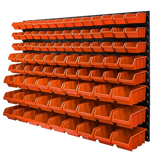 Verktygsvägg, 1728 x 780 mm, stapelbara lådor, verktygshållare med väggplatta, fästskenor, för garagelager, verkstad, hobby (50 boxar, orange)