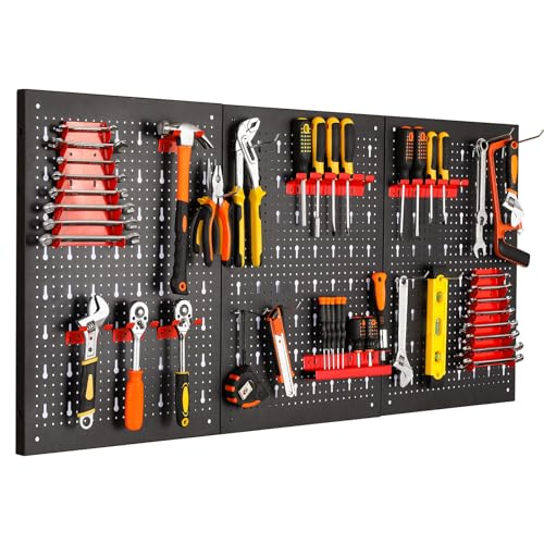 COSTWAY Verktygsvägg, verktygshålvägg med 3 paneler och 28 stycken hängande tillbehör, verktygsvägg med fyrkantiga upphängningshål för garage, verkstad (svart)