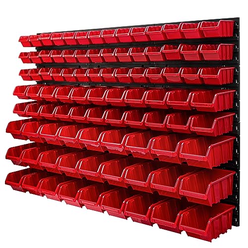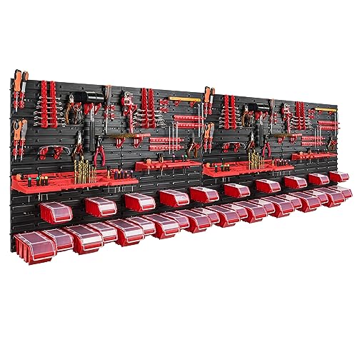 Verktygsvägg, 1728 x 780 mm, stapelbara lådor, verktygshållare med väggplatta, fästskenor, för garagelager, verkstad, hobby (50 boxar, röd)