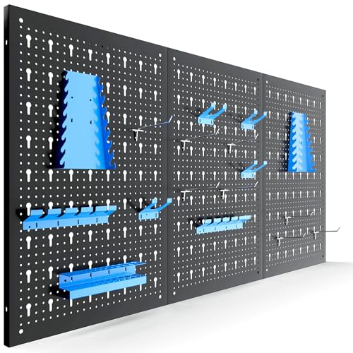 Arebos Verktygsvägg i tre delar | 17 krokar i blått | 117,6 x 59,5 x 2 cm | Metallperforerad verktygsvägg + fästen + monteringsmaterial