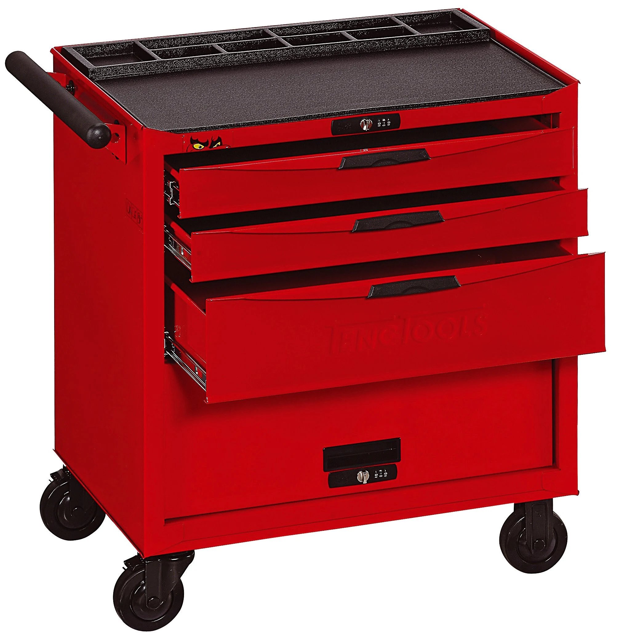 Meister Verktygsvagn 238 delar – med kvalitetsverktyg från Knipex & Wera – teleskophandtag/professionell verktygsväska/verktygslåda kan användas på hjul/verktygslåda/8973770