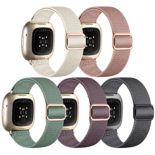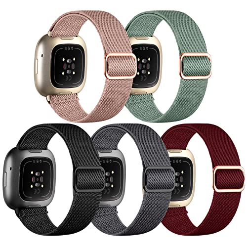 Charlam 5-pack nylonarmband för Fitbit Versa 3/Versa 4/Fitbit Sense/Sense 2, av ett mjukt och stretchigt nylonmaterial, ersättningsarmband, unisex, kvinnor män, finns i flera färger