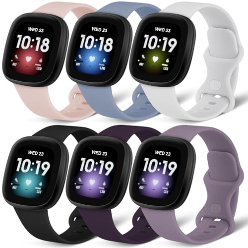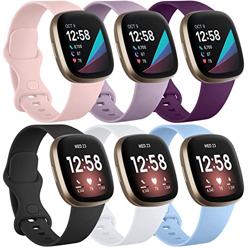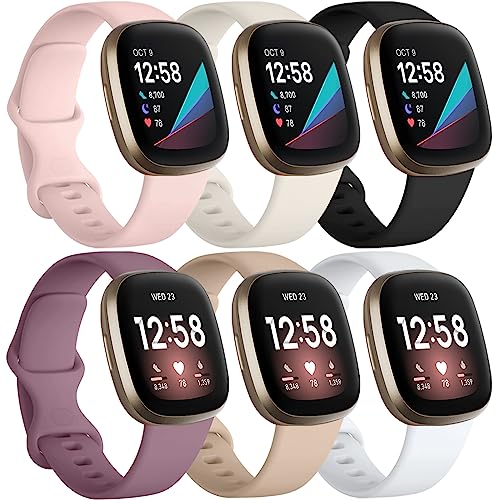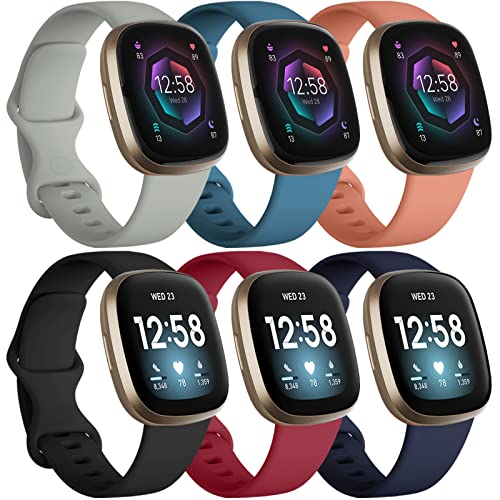 Charlam 6-pack remmar kompatibla med Fitbit Versa 3/Versa 4 remmar/Fitbit Sense/Sense 2 rem, mjukt sportklockarmband ersättningsarmband för kvinnor män, små, ljusa färger