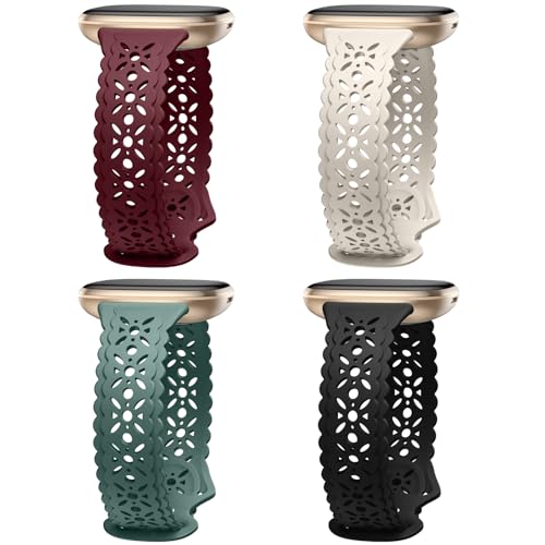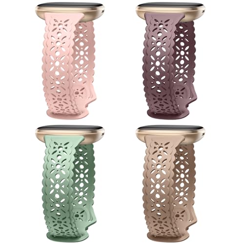 Charlam 4-pack Lace ersättningsarmband kompatibelt med Fitbit Versa 3/Versa 4/Fitbit Sense/Sense 2 armband, mjukt silm ihåligt ihåligt sportklockarmband, ersättningsarmband för kvinnor flickor