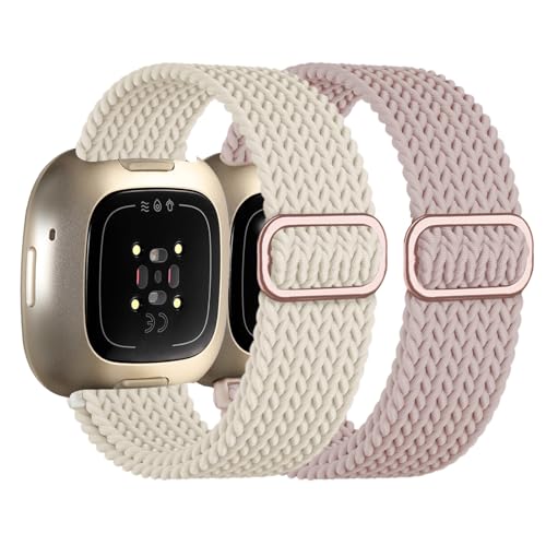 Zythtic 2 stycken flätat armband kompatibelt med Fitbit Versa 4/Fitbit Versa 3/Fitbit Sense/Sense 2 för kvinnor och män, elastiska ersättningsband i nylon för Versa 3/Versa 4/Sense/Sense 2, Mellanstor