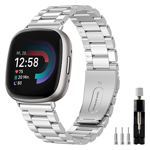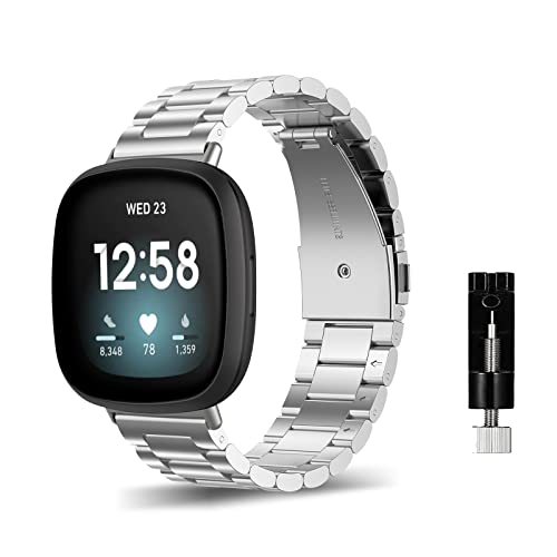 ZoRoll Armband för Fitbit Versa 4/Fitbit Sense 2, rostfritt stål metall ersättningsarmband män och kvinnor kompatibel med Fitbit Versa 4/Fitbit Sense 2 – silver