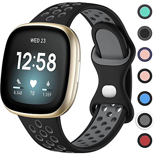 Upeak Sportarmband kompatibelt med Fitbit Versa 3/Versa 4/Fitbit Sense/Sense 2, ventilerande silikon, dubbla hål, snäppspänne, ersättningsarmband, storlek L, svart/grå