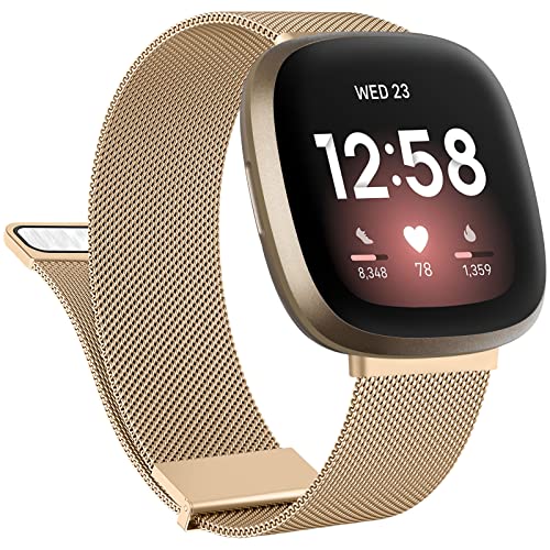 Charlam Metallremmar kompatibla med Fitbit Versa 4-rem, Fitbit Versa 3 rem för kvinnor, magnetisk justerbar rem i rostfritt stål för Fitbit Sense, Sense 2, Metall