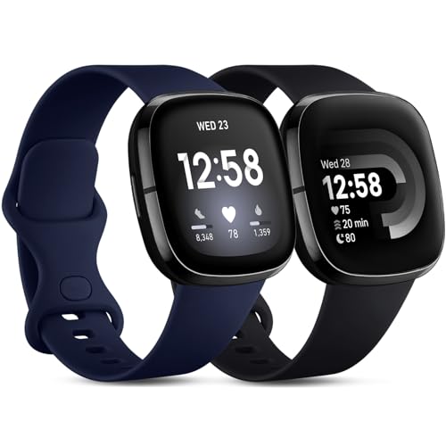 CeMiKa Rem kompatibel med Fitbit Versa 4/Versa 3/Fitbit Sense/Sense 2, ersättningsrem, handledsrem, mjuk sportrem för kvinnor och män, storlek Small (marinblå, svart)