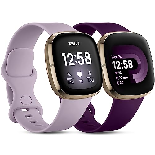 CeMiKa Rem kompatibel med Fitbit Versa 4/Versa 3/Fitbit Sense/Sense 2, ersättningsrem, mjuk sportrem för kvinnor och män, storlek Small, (lavendel, plommon)