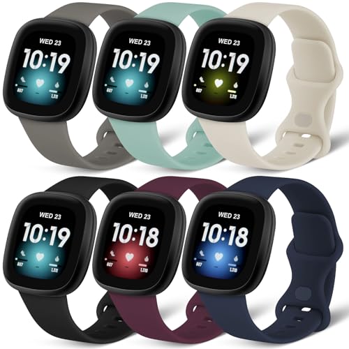 Charlam 6-pack remmar kompatibla med Fitbit Versa 3/Versa 4 remmar/Fitbit Sense/Sense 2 rem, mjukt sportklockarmband ersättningsarmband för kvinnor män, små, mjuka färger