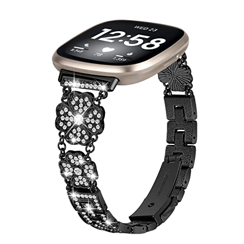 SMYAOSI remmar kompatibla med Fitbit Versa 4/Fitbit Versa 3/Fitbit Sense 2/Fitbit Sense rem, bling strassband ersättning metallarmband armband armband för Fitbit Versa 4 / Versa 3, Rostfritt stål