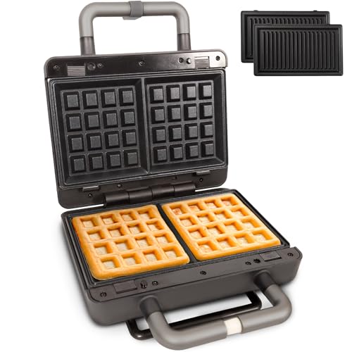 Gadgy 2-i-1 våffeljärn och smörgåsgrill – avtagbara non-stick-plattor för våfflor och grill – cool-touch-handtag, kontrollampa, vertikal förvaring – termostat – matt svart/silver