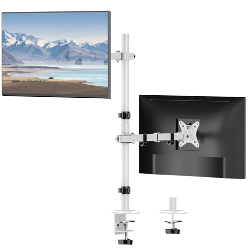 Dubbel bildskärm artikulerande skrivbordsstativ – vertikal stapel skärm stöder två 13 till 34 tums datorskärmar med C-klämma vit