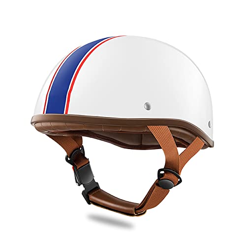 LIONCIANO Vuxen retro Harley motorcykelhjälm scooterhjälm, snygg halvöppen hjälm med glasögon, öppet ansikte Jet kraschhjälm för moped cruiser Vespa (randig vit)