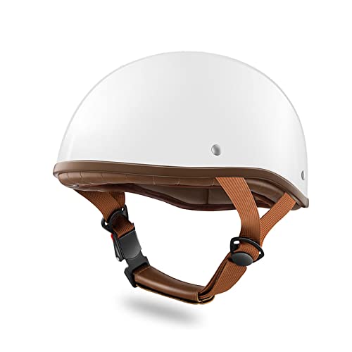 LIONCIANO Vuxen retro Harley motorcykelhjälm scooterhjälm, snygg halvöppen hjälm med glasögon, öppet ansikte Jet kraschhjälm för moped cruiser Vespa (vit)