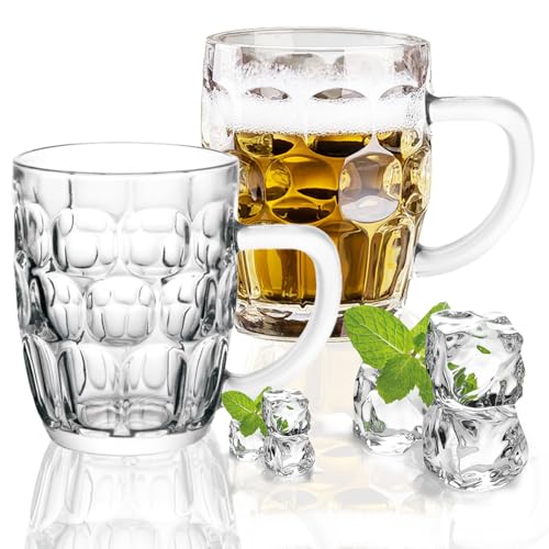 Liuer ölglas, ölmuggar 0,5 liter, veteölglas av högkvalitativt glas, ölmugg med handtag, ölrep för familjefester eller fester (B)