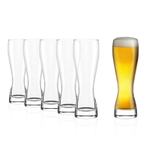 Van Well Set med 6 veteölglas 0,5 l klart kalibrerade | Perfekt för gastronomi och bar | diskmaskinssäker | vitölglas med smal form
