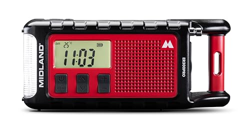 Midland ER300 Pro C1663 – AM/FM nödradio och USB-C externt batteri för 2 smartphones, uppladdningsbart Li-Ion-batteri, 10 000 mAh, integrerad Bluetooth